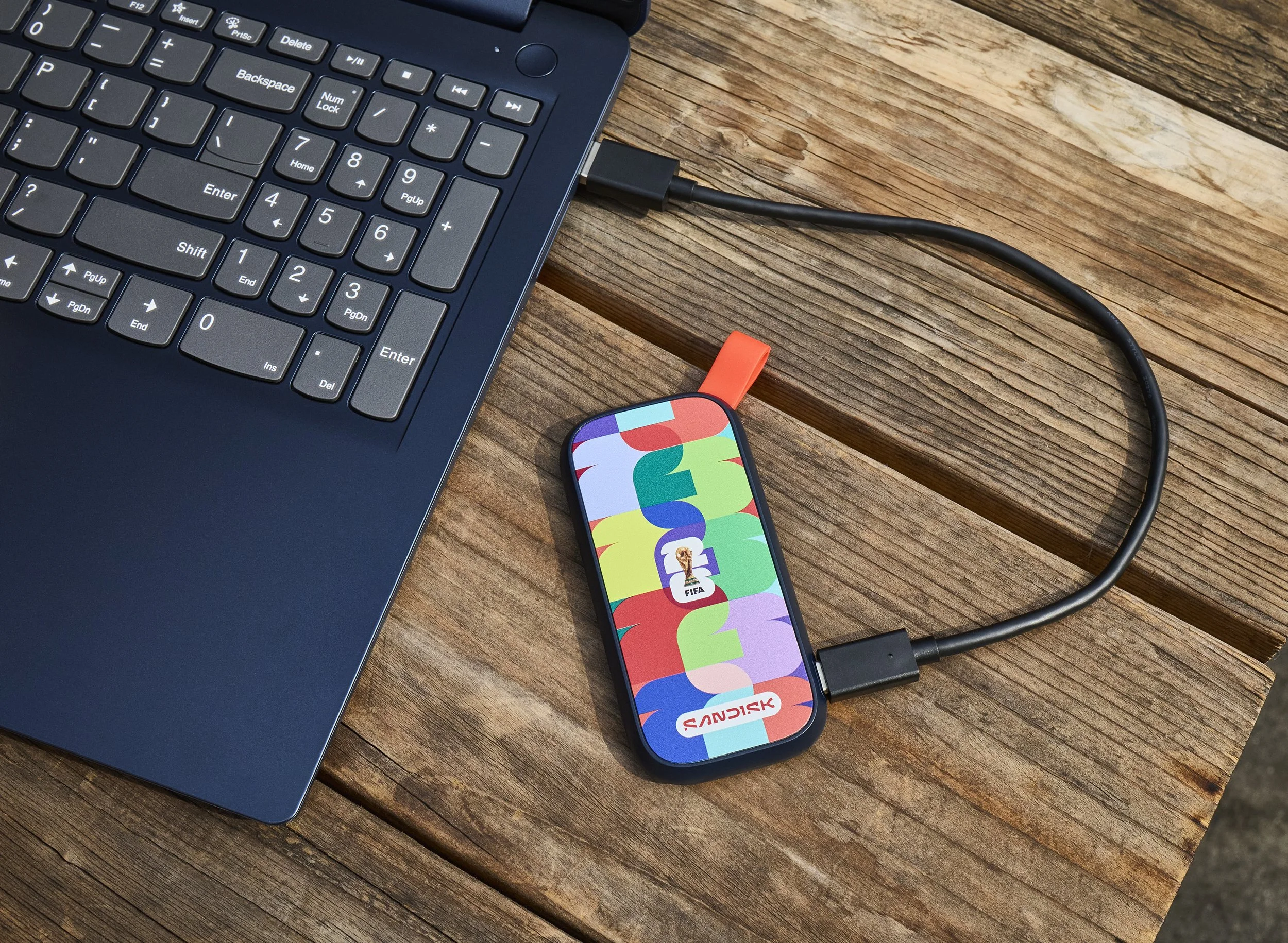 SSD Excellence: The SANDISK® Portable SSD FIFA World Cup 2026™ Edition offers up to 1TB* of storage for fast, reliable computer backups and file transfers.